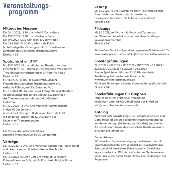 Auf umkämpftem Markt dokumentiert Anfang der 1930er Jahre Gertrude Fuld das Theaterleben in München, ihre Bilder entstehen direkt auf den Bühnen. Es sind theaterdokumentarische Zeugnisse einer Zeit in unheilvollem Wandel.