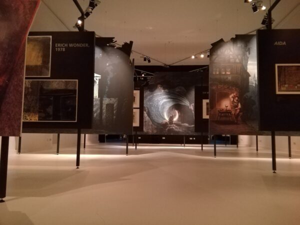Kernstück der Ausstellung sind fünf komplette Serien von Bühnenbildentwürfen zu den erfolgreichsten Repertoire-Stücken des Nationaltheaters: zur Zauberflöte, den Meistersingern, der Frau ohne Schatten, zu Aida und Fidelio.