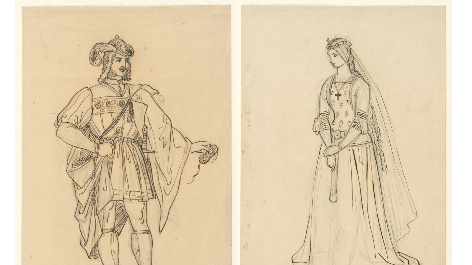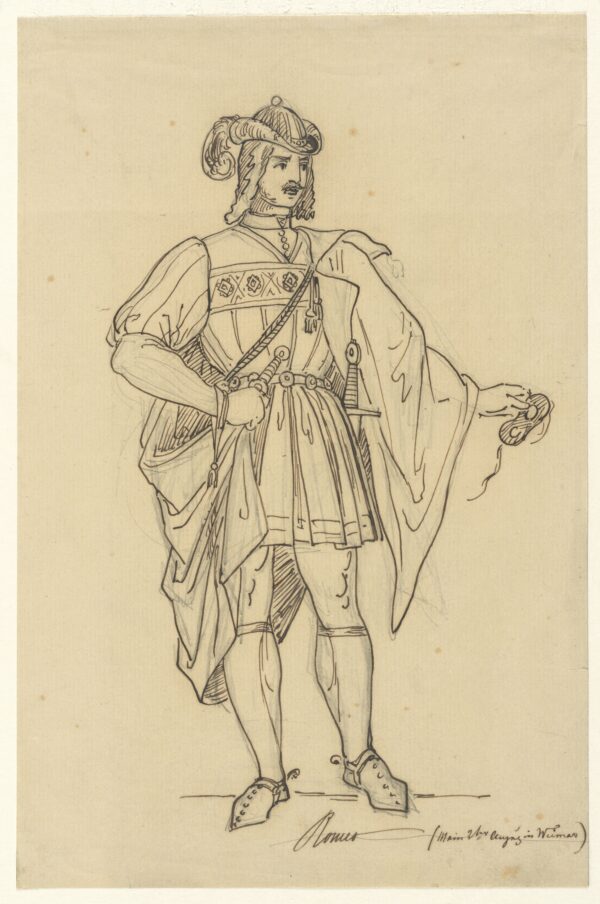 Kostümentwurf für "Romeo" zu „Romeo und Julia“ am Herzoglichen Hoftheater Meiningen von Georg II. von Meiningen, 1897. Deutsches Theatermuseum München, ID 54841.