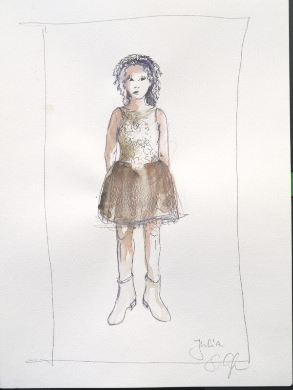 Kostümentwurf für "Julia" zu "Romeo und Julia“ am Theater Krefeld und Mönchengladbach, von Sigi Colpe, 2014.