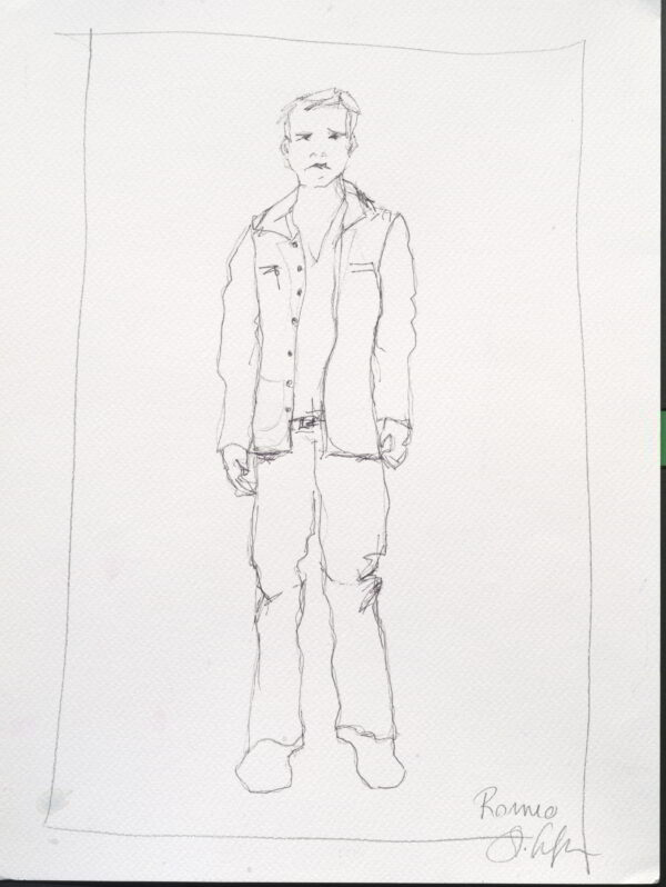 Kostümentwurf für "Romeo" zu "Romeo und Julia“ am Theater Krefeld und Mönchengladbach, von Sigi Colpe, 2014.