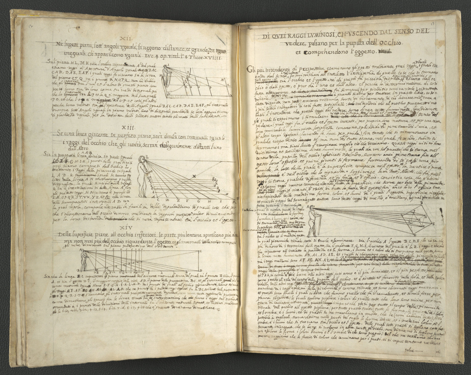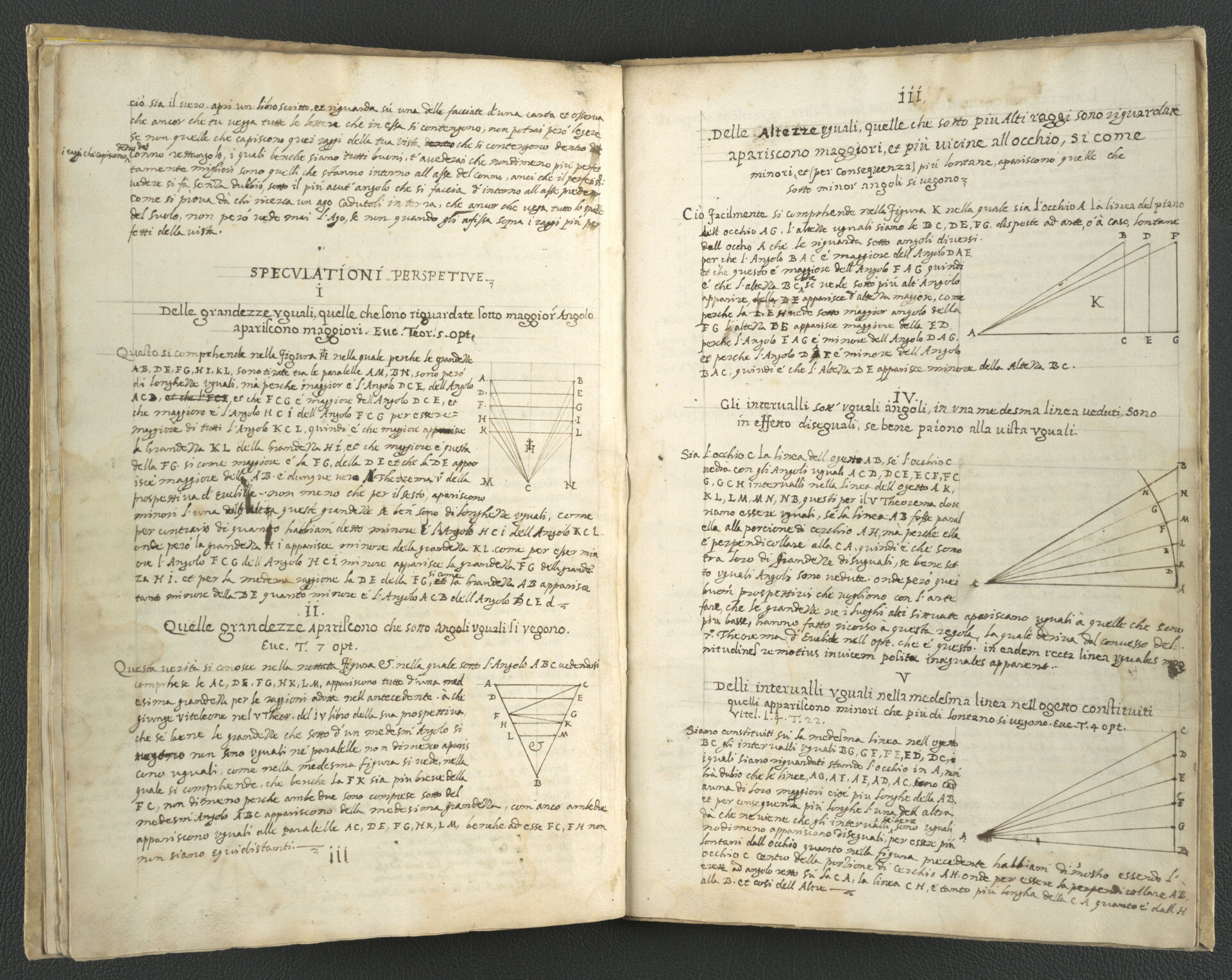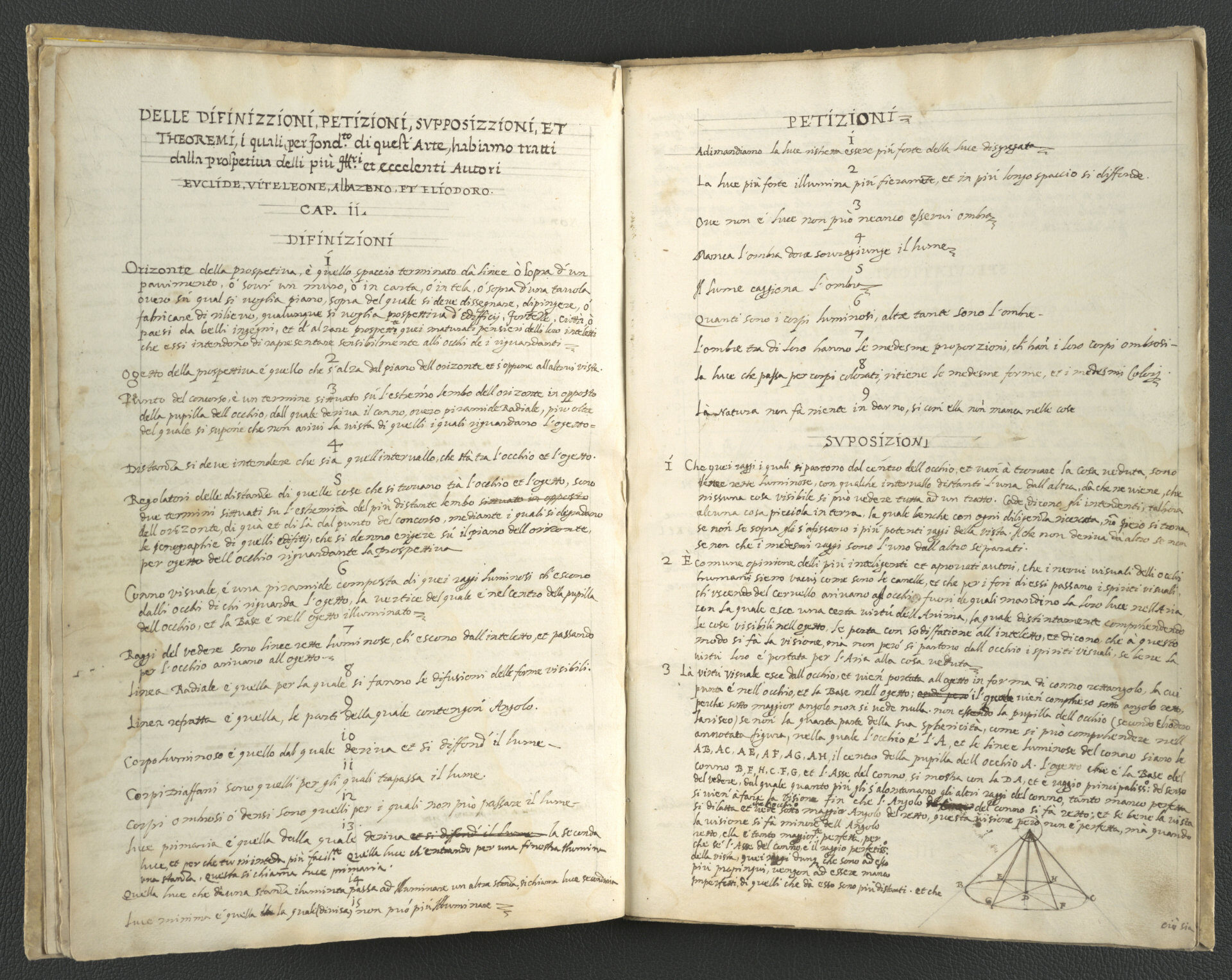 Die um 1620 datierte Autograph mit dem Titel „Regole generali di prospettiva“ („Allgemeine Regeln der Perspektive“) stammt von Giovanni Battista Aleotti, detto l‘Argenta (1546–1636), einem bedeutenden Ingenieur sowie Theater- und Bühnenarchitekten. Aleotti verfasste dieses Werk in fortgeschrittenem Alter und hinterließ damit eine Art Anleitung zum perspektivischen Zeichnen – insbesondere für die Gestaltung von Bühnenbildern.