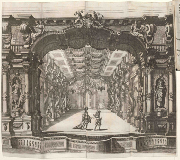Die eigens dafür aus Italien angeforderten Theaterarchitekten und Bühnenbildner Gasparo und Domenico Mauro gestalteten anlässlich der Aufführung dieser Festoper das Proszenium des Salvatortheaters, seine bühnentechnische Einrichtung und die zugehörenden Bühnendekorationen neu. Nach ihren Entwürfen fertigte dann Michael Wening (1645–1718) insgesamt elf Kupferstiche, die, jeweils aus zwei Druckplatten zusammengesetzt, das Libretto der Oper eingebunden wurden. Auf ihnen ist jeweils das neue Proszenium die wechselnden Bühnendekorationen zu sehen. Sie zeigen die in barocken Bühnendekorationen immer wiederkehrenden, typisierten Orte wie den Saal, Garten, Wolkenlandschaft, Hof, ein Zimmer oder einen Platz, die jeweils in zentralperspektivischer Sicht, ganz achsialsymmetrisch ausgeführt sind.
