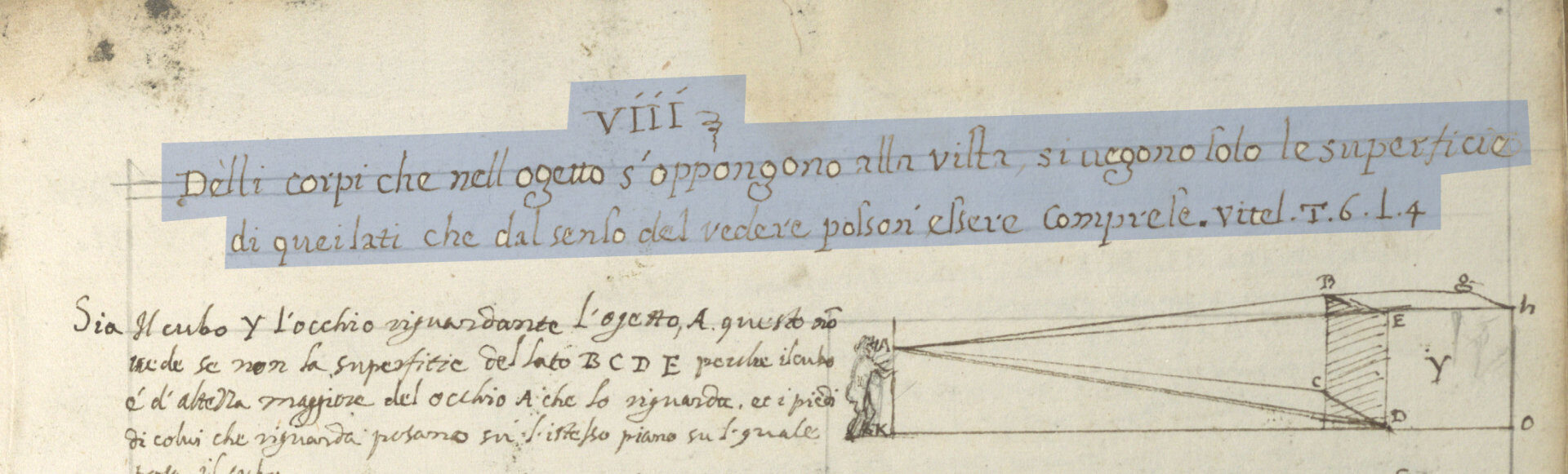 Von den Körpern, die sich im Objekt dem Blick entgegenstellen, sieht man nur die Flächen der Seiten, die vom Sehsinn erfasst werden können. Vitel. T. 6. L. 4