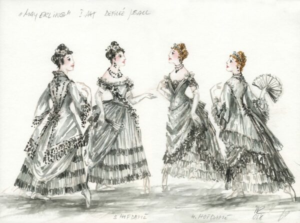 Die ästhetische Energie, mit der Jürgen Rose seit 1959 Schauspiel, Oper und Ballett in Deutschland und darüber hinaus geprägt hat, sie hat ihren Niederschlag gefunden in seinem zeichnerischen Werk. Darin gibt es fein ausgearbeitete Landschaftsprospekte, Bildwelten von Gustav Klimt, Paul Klee oder der byzantinischen Kunst inspiriert, kühne Figurinen, zarte Modezeichnungen, opulente Variationen eines Farbtons in derselben Silhouette, die an das Spätwerk von Edgar Degas anzuknüpfen scheinen – und vieles Andere mehr.