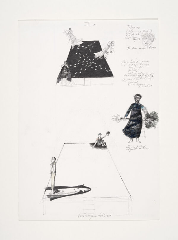 Die grafische Sammlung des Deutschen Theatermuseums erhält mit dem Nachlass von Bühnen- und Kostümbildner Karl-Ernst Herrmann (1936-2018) einen bedeutenden Zuwachs. Kunstminister Markus Blume betont: „Karl-Ernst Herrmann war in seinem Metier schon zu Lebzeiten eine Legende: Mit dem Erwerb seines Nachlasses kommt das Erbe eines für die deutsche Theaterlandschaft prägenden Bühnenbildners nach München. Ich freue mich sehr, dass mit den visionären Entwürfen Herrmanns die bedeutsame grafische Sammlung des Deutschen Theatermuseums um ein weiteres Juwel wächst.“ Der Nachlass umfasst ca. 1600 graphische Blätter, vor allem Bühnenentwürfe, schematische Zeichnungen und Kostümentwürfe und deckt über 60 Theaterproduktionen von prägenden Regisseuren des europäischen Sprech- und Musiktheaters, darunter Peter Stein, Claus Peymann und Luc Bondy ab. Die in seinem Nachlass befindlichen szenografischen Arbeiten stammen aus den Jahren 1972 bis 2018 und umfassen damit die gesamte Schaffensperiode Karl-Ernst Herrmanns. „Die von ihm zeichnerisch minutiös gearbeiteten Blätter dokumentieren beispielhaft grundlegende Entwicklungen der Theaterästhetik an der Schwelle zum 21. Jahrhundert“, freut sich Museumsdirektorin Dr. Dorothea Volz über den Erwerb.