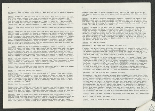 Protokoll Nr. 620 der Stabschauspielersitzung vom 6.4.1978 zur Produktion von „Groß und klein“. Schaubühne am Halleschen Ufer Berlin 1978 Original und Faksimile Deutsches Theatermuseum